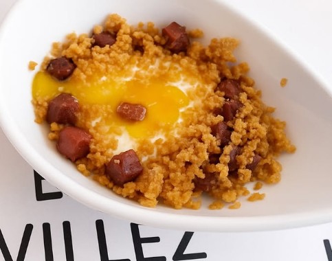 And don’t even think about reaching for the salt — the seasoning is flawless. The cured pork and toasted “crumb sand” deliver all the complexity the dish needs. The only utensil required? A spoon — to savor the silken cream that defines this creation.